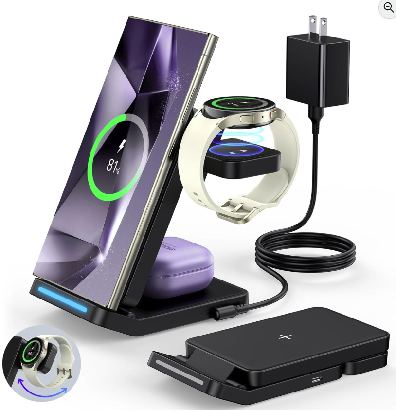 Foldable Wireless Charger for Samsung, 3 in 1 Fast Wireless Charging Station Stand for Samsung Galaxy S25 Ultra S24/S23/S22/S21/Note/Z Fold 7 ZFlip 7/6/5…