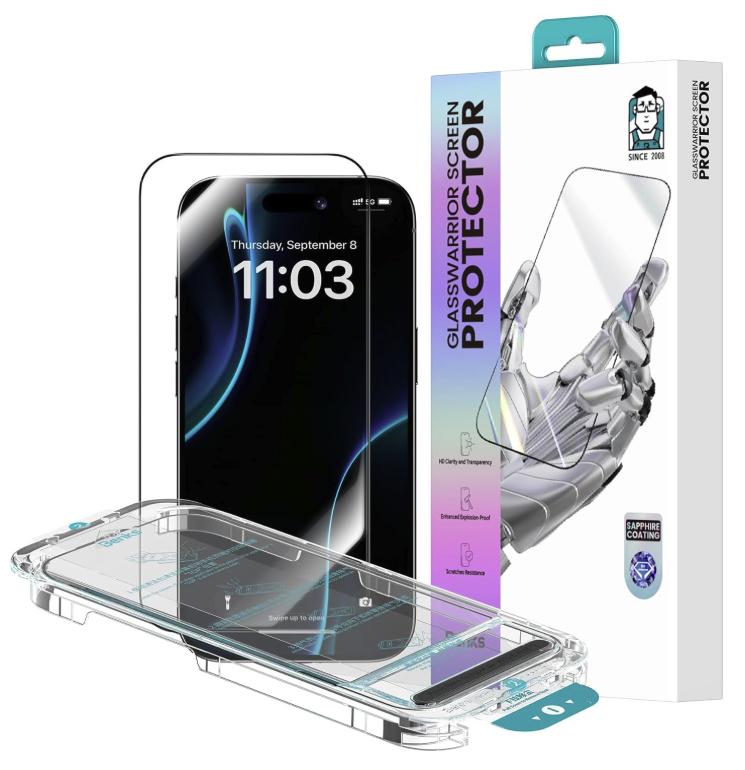 - BENKS GlassWarrior Sapphire Screen Protector for iPhone 17 Pro 6.3 inch, 3D Curved Full Coverage Tempered Glass, Ultra HD Clarity, Anti-Fingerprint, Scratch & Shatter Resistant